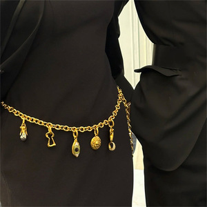 欧美夏帕同款恶魔之眼金属吊坠腰链小众设计感链条腰带细腰配饰女