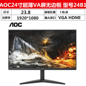 AOC24寸VA屏无边框 接口VGA/HDMI+标配