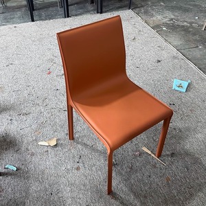 意式马鞍皮餐椅现代轻奢家用餐厅靠背椅酒店书房洽谈样板设计师椅