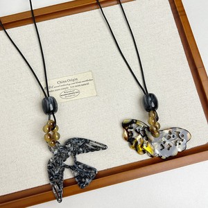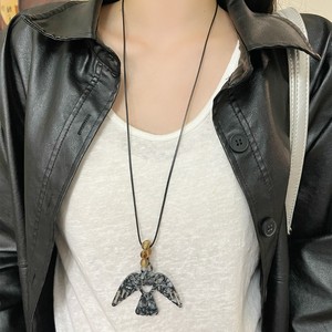 时尚度假风树脂小鸟蝴蝶吊坠项链女小众设计感长款毛衣链个性颈链