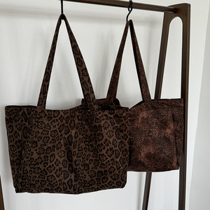 ins休闲时尚大容量百搭单肩手提托特包韩版新款大容量豹纹托特包