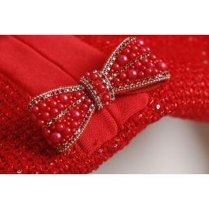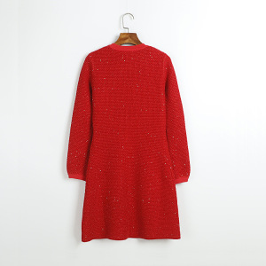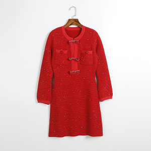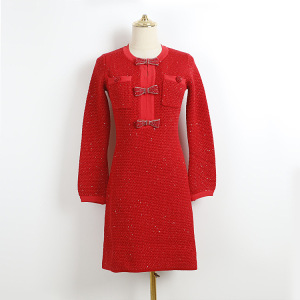 (钉钻蝴蝶结扣长袖中长裙 QS) 红色