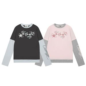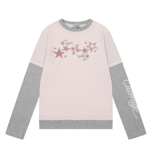 Fudge Pink 25秋季New甜美少女趣味图案假两件宽松长袖T恤
