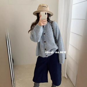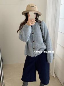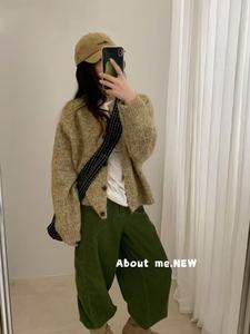 韩系早秋穿搭针织开衫女宽松慵懒风2025新款花色毛衣外套短款上衣