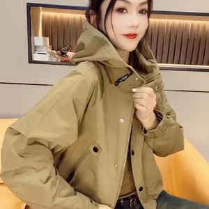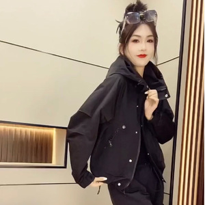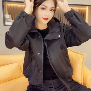欧货冲锋衣女2025春秋季新款连帽拉链宽松工装风衣外套女休闲短款