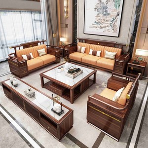 乌金木中式实木沙发榫卯储物冬夏两用款别墅客厅家用原木沙发组合