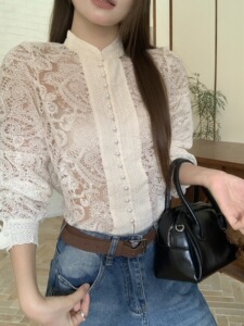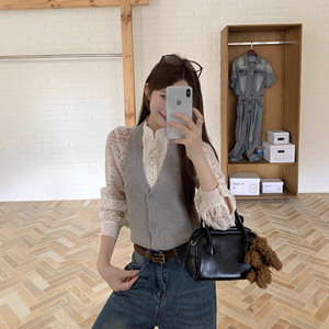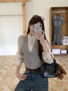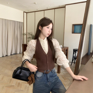 法式挂脖针织背心马甲镂空长袖蕾丝衫女2025秋季新款洋气时尚套装