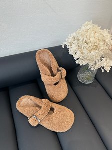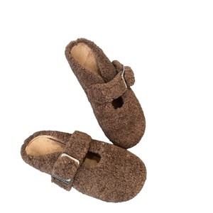 滨莉25秋冬新款平底环保网红百搭ins风毛毛鞋保暖加绒包头半拖