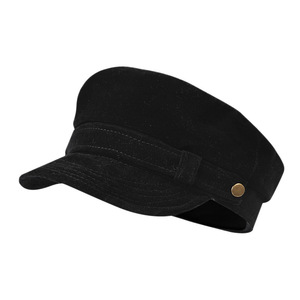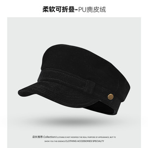 美拉德咖色麂皮绒海军帽女千金风复古八角帽英伦画家帽贝雷帽女