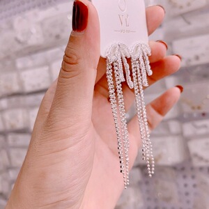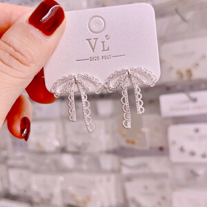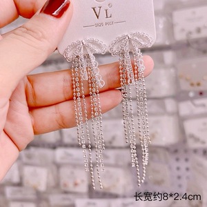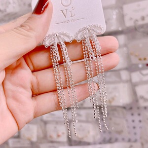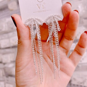 婉灵超闪蝴蝶结时尚长款流苏耳环小众两戴百搭饰品耳钉耳坠