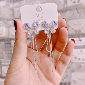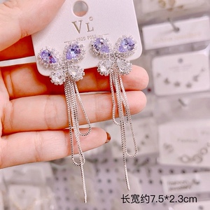 紫色蝴蝶后挂式流苏耳坠925银针