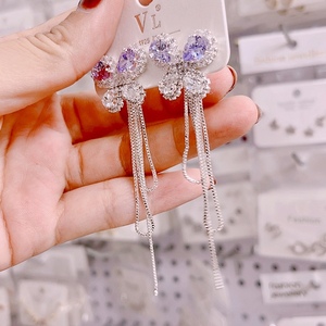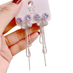 婉灵高级感气质锆石蝴蝶结两戴流苏耳坠s925银针耳钉精致时尚