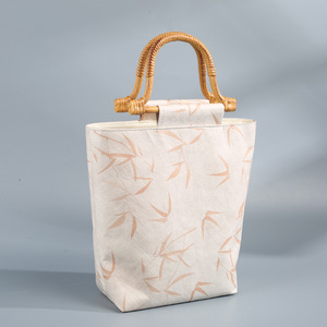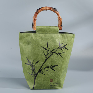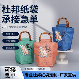 杜邦纸袋定制logo竹把手手提袋可水洗复古揉纹文创广告宣传礼品袋