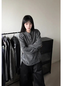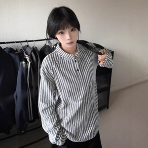 鱼骨纹重磅长袖t恤美式复古高级感亨利领卫衣男款秋季内搭打底衫