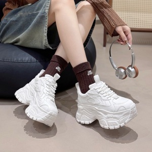 小个子真皮厚底休闲鞋女小白鞋2025早秋新款增高8cm显脚小老爹鞋