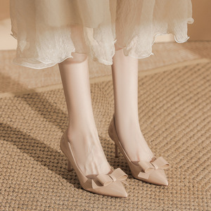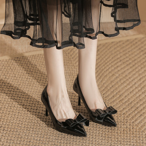 法式蝴蝶结尖头高跟鞋女细跟黑色单鞋气质高级不累脚2025新款秋季