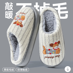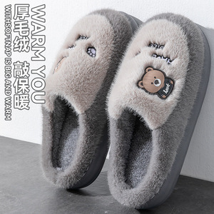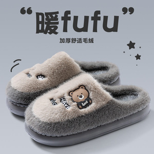 防臭毛毛棉拖鞋男士秋冬季2025款室内家居厚底保暖加绒卡通棉拖男