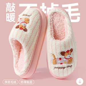 粉色【加绒加厚卡通毛绒棉拖】