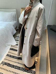 韩系秋季新款立领休闲大衣宽松腰带款插肩袖立领气质长款风衣外套