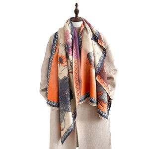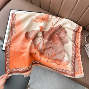 冬季国风仿羊绒围巾女水墨画荷花办公室空调披肩两用加厚保暖围脖