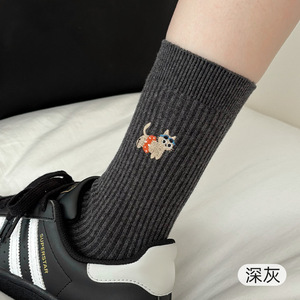 袜子女秋季中筒袜堆堆袜棉袜刺绣ins潮韩系卡通百搭诸暨袜子批发
