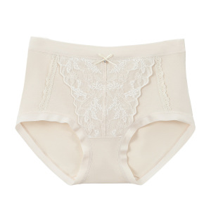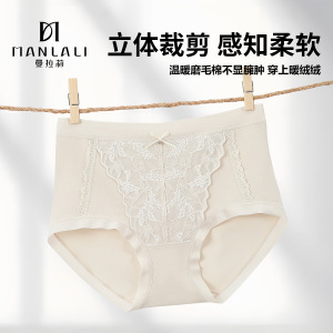 秋冬柔暖法式蕾丝内裤女舒适中腰磨毛棉感10A抗菌蚕丝裆三角内裤