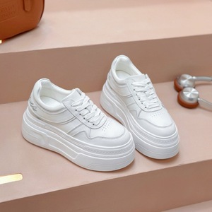 轻便增高8cm真皮麦昆风小白鞋女2025秋新款松糕厚底小个子休闲鞋