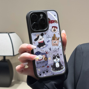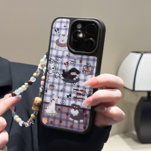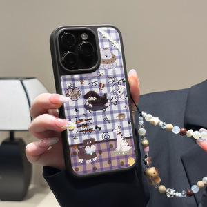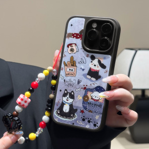 适用苹果15/16/17PROmax手链手机壳iPhone12/13小狗玻璃壳14防摔