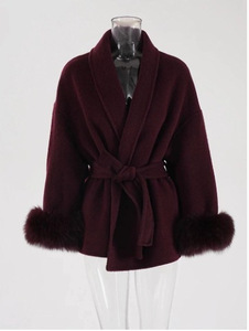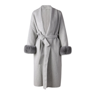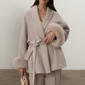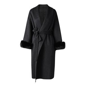 跨境爆款狐狸毛双面羊毛大衣女冬季新款系带收腰高级感气质外套