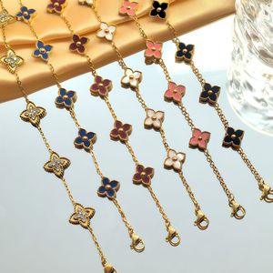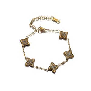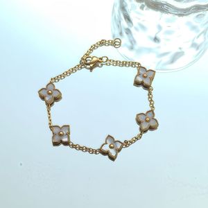 爆款高级贝母镶钻四叶草花朵手链小众轻奢手饰百搭小香风女生饰品