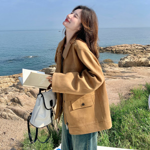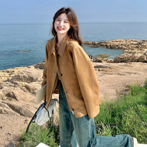 美式复古夹克设计感小个子上衣2025年秋季新款短款翻领麂皮绒外套