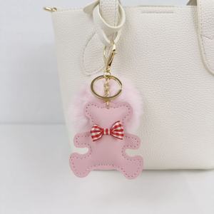 秋冬 创意DIY毛绒领结小熊PU皮革立体充棉箱包挂件服饰配饰钥匙扣