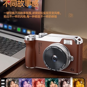 Y02/棕色-翻转屏-【6400万像素+4K高清录制+16倍变焦】 可写贺卡+手链-64内存可存储6