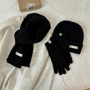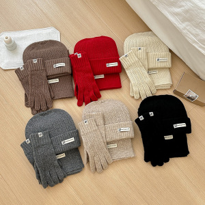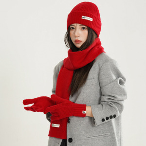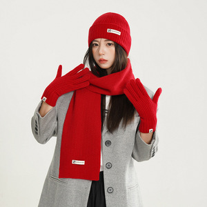 2025新款过年礼物新年红色毛线帽子围巾手套三件套女秋冬保暖围脖
