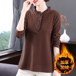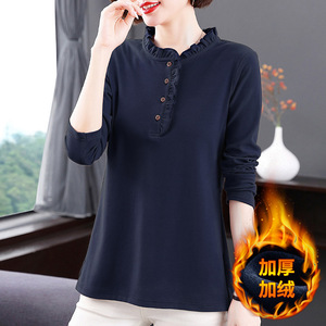 棉大码打底衫女装2025春秋新款中年妈妈长袖t恤女士百搭上衣服