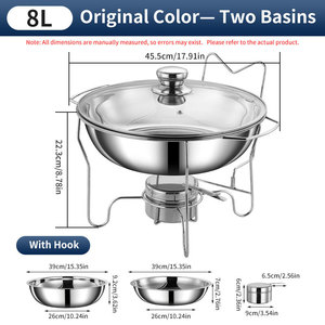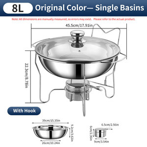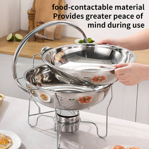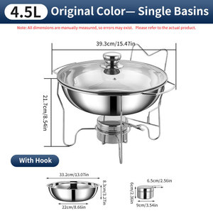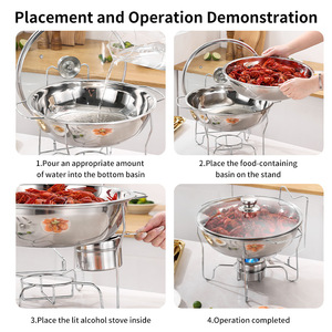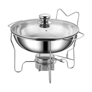 跨境不锈钢201侧挂钩酒精炉chafing dish圆形玻璃盖保温自助餐炉