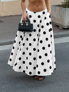 法式优雅撞色大波点A摆梭织半裙气质都市印花修身显瘦中长裙女