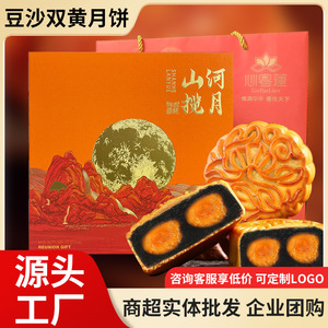 广式黑芝麻双蛋黄月饼五仁豆沙广式莲蓉传统糕点中秋送礼厂家批发