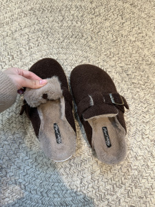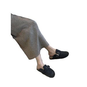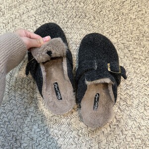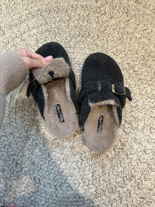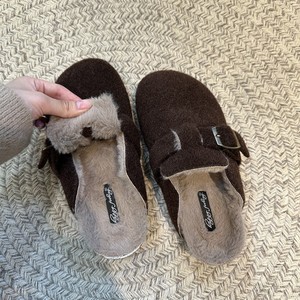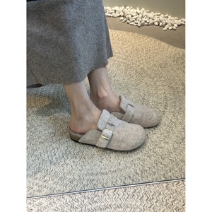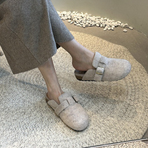 厚底加绒勃肯鞋包头半拖鞋女2025秋冬复古一脚蹬穆勒鞋毛毛棉拖鞋
