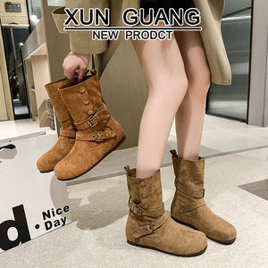 牛皮版复古磨砂勃肯短靴女2025秋冬新款美拉德两穿显瘦增高马丁靴