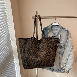 韩系豹纹帆布包包女慵懒风百搭单肩腋下包松弛感大容量通勤托特包