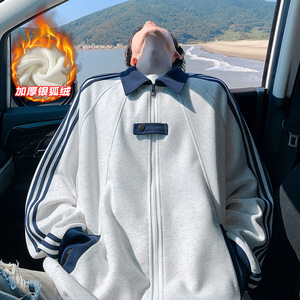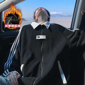 500g重磅银狐绒三条杠大码卫衣外套男加厚W5089J加绒-特P70控128