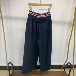 藏青色/拼条纹阔腿裤
