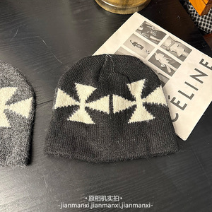 日系涩谷街头辣妹星星针织堆堆帽子女秋冬甜酷网红百搭套头毛线帽