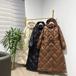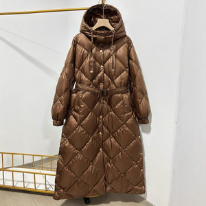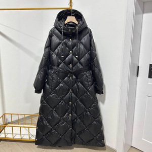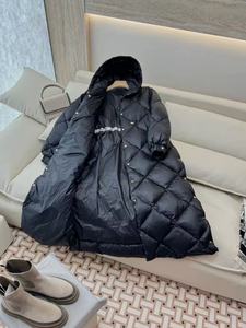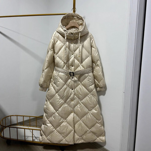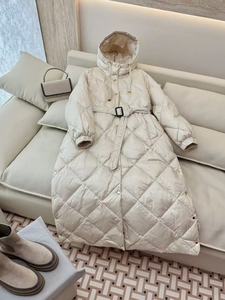 欧洲站外贸款连帽腰带菱格系腰带过漆长款侧开叉小金扣女外套