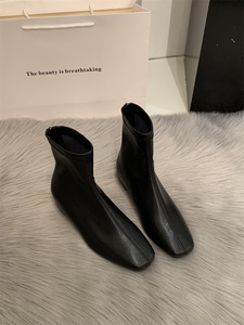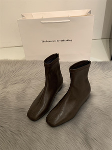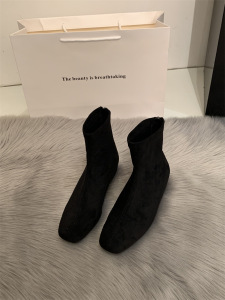 内增高小个子复古方头绒面粗跟短靴女2025秋冬新款瘦瘦靴裸靴