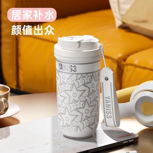 Y3新款双饮保温杯女生高颜值吸管杯316不锈钢高颜值提提绳咖啡杯