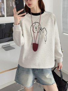 ADERH圆领卫衣女春秋新款小狗长袖打底衫宽松休闲小个子减龄上衣