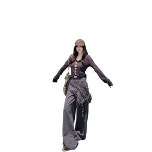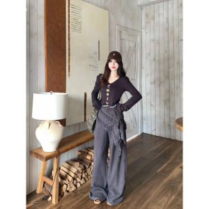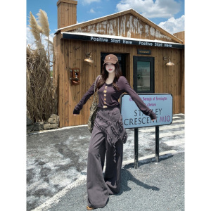酷飒风独特套装女木耳边屁帘2025超火穿搭一整套新款工装阔腿裤潮