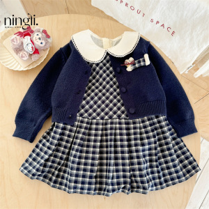 【柠里】小学妹!女童连衣裙秋装新款洋气宝宝针织开衫裙子套装潮